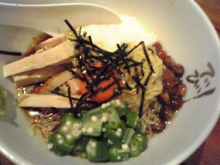 タレは冷やし中華風でやや酸味・ピリ辛の醤油味です。麺は、