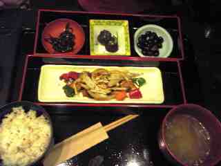 豆の煮物等他副菜3品がつく。豚が若干固かった。