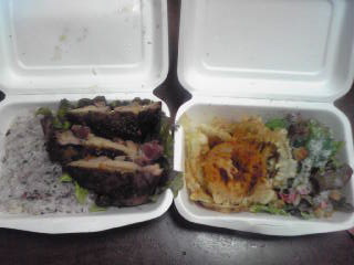 サラダがいいですね☆ジャークチキンは独特のケイジャン風スパイスで
