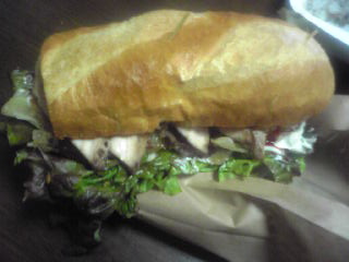 おそらくお隣(Sailer)さんのじゃないかと(^^;)こちも、ジャークチキンの風味が良いです。でも、味はもうちょっと濃いめの方がパンと合わせた時に薄れないかと。…因にこれより大きいLサイズはバゲット一本いっちゃいます。