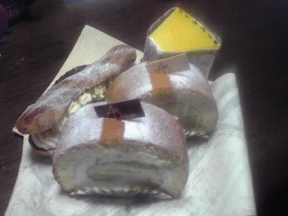 ロールケーキ2種は、ひとつには桃・もうひとつには栗クリーム入り。生クリームがとても軽い。マロンロールのほうは、もうちょっと栗っぽさを全面に出しても大丈夫だと思う。