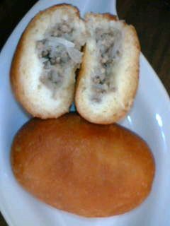 ひき肉とタマネギと春雨みたいなのがはいっているだけ。味付けは塩・こしょうが中心で、ケチャップやその他ソースは入っていない。ただこれだけなのにかなり病み付きになる。一人で2コはいけそうなくらい(でも揚げパンだからカロリーが…)。周りに衣がつけてなくて素揚げなので食べ易い。