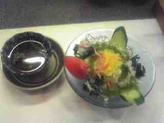 ランチにはスープ・サラダ・あと季節の小デザート付き。スープはコンソメで、ハヤシライスを作る時に使用しているものかな〜と思った。サラダは海藻サラダ。和風のドレッシングがかかっている。