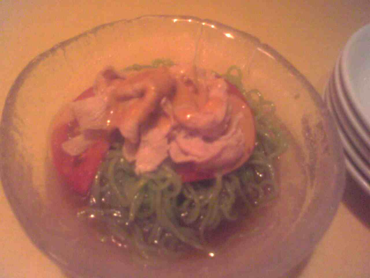 ドーンとのっていて、トマトソースはそのエビ味噌風味がつけられている。100gしっかり