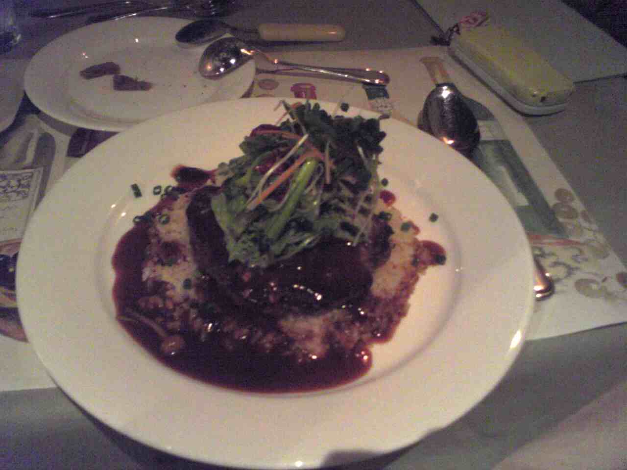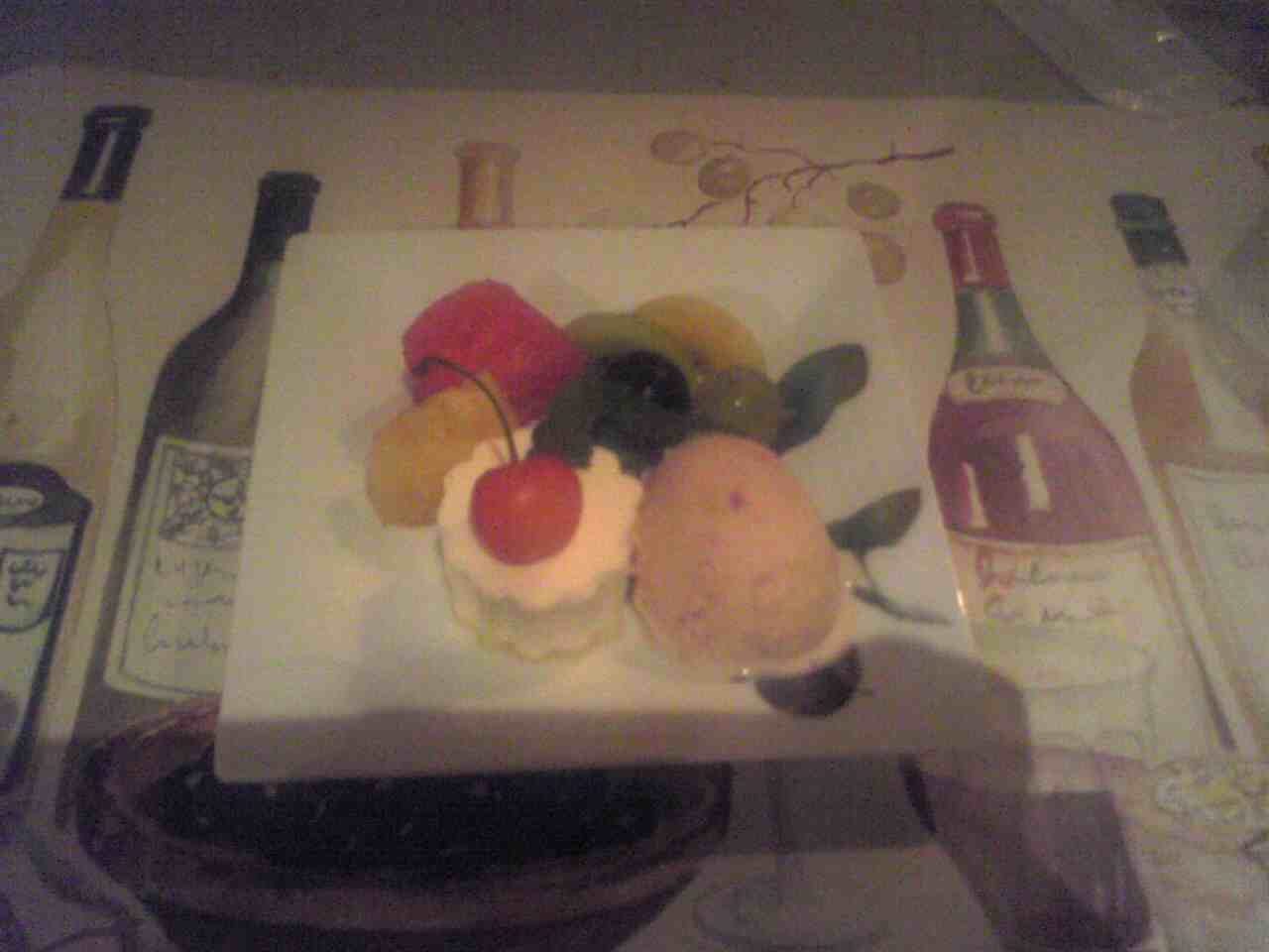 メインは和牛のデミグラス煮込み。そしてデザートはシャーベット・ムース・フルーツ盛り。