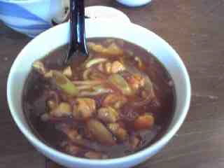 250¥の割にはしっかりとご飯が装ってある。鶏ダシをベースに醤油で味付け。醤油味は