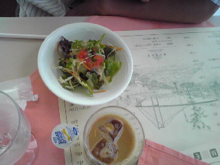 パスタランチには、バーガー丼と同じコーンポタージュ、サラダがついてくる。この日