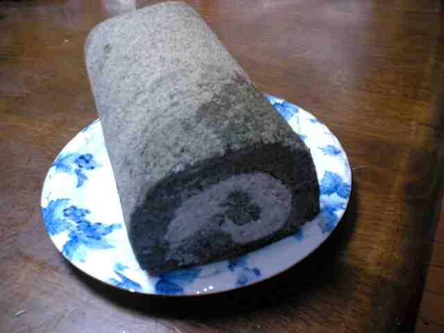 仙台からのお土産で貰ったごまロールケーキ。お土産なので値段はわかりませんが、おそらく1000円前後。スポンジにも中のクリームにもたっぷり黒ごまが練り込まれていて、とっても濃厚。スポンジのキメも細かく、しっとりとしている。中に練り込まれているクリームは、もちろん動物性。バタークリームのような甘さとほんのりとした塩味。濃厚だが後口はさっぱりとしているので、ガンガン食べ進んでしまう。一本買いがオススメ。