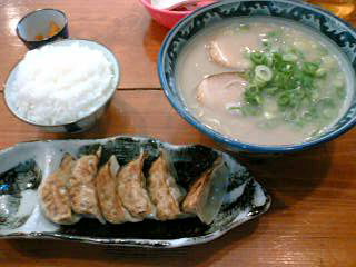 ラーメンとごはん 餃子 とんこつが全面に出たスープ。