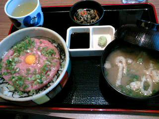 結構コッテリでネギとごまがたっぷりふりかかっている。