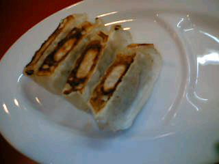 餃子は中にネギ、生姜、豚肉等。肉まんの中身みたいな味わい。