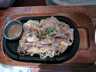 豚肉ソテー野菜とスパゲッティ添え。