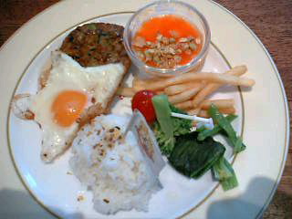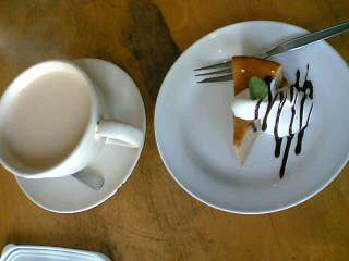 のほうが若干グレードアップしたものがいただける。写真の飲み物はチャイ。シナモンその他結構スパイスが効いていて、ただのミルクティではなかった。