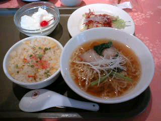 850¥でかなり盛りだくさん!しかもセットのご飯、チャーハンはお代わり可能。点心は小龍包、海老蒸し餃子、しゅうまい、春巻き等基本を抑えている。味も、普通においしい。また、食後に杏仁豆腐がついてくるのもうれしい。セットのタンメンは、一番基本の味。鶏と醤油ベースの中華ラーメン。麺は細めで縮れていて、牛肉タンメンのほうがコシ・歯ごたえ等しっかりしている感じ。