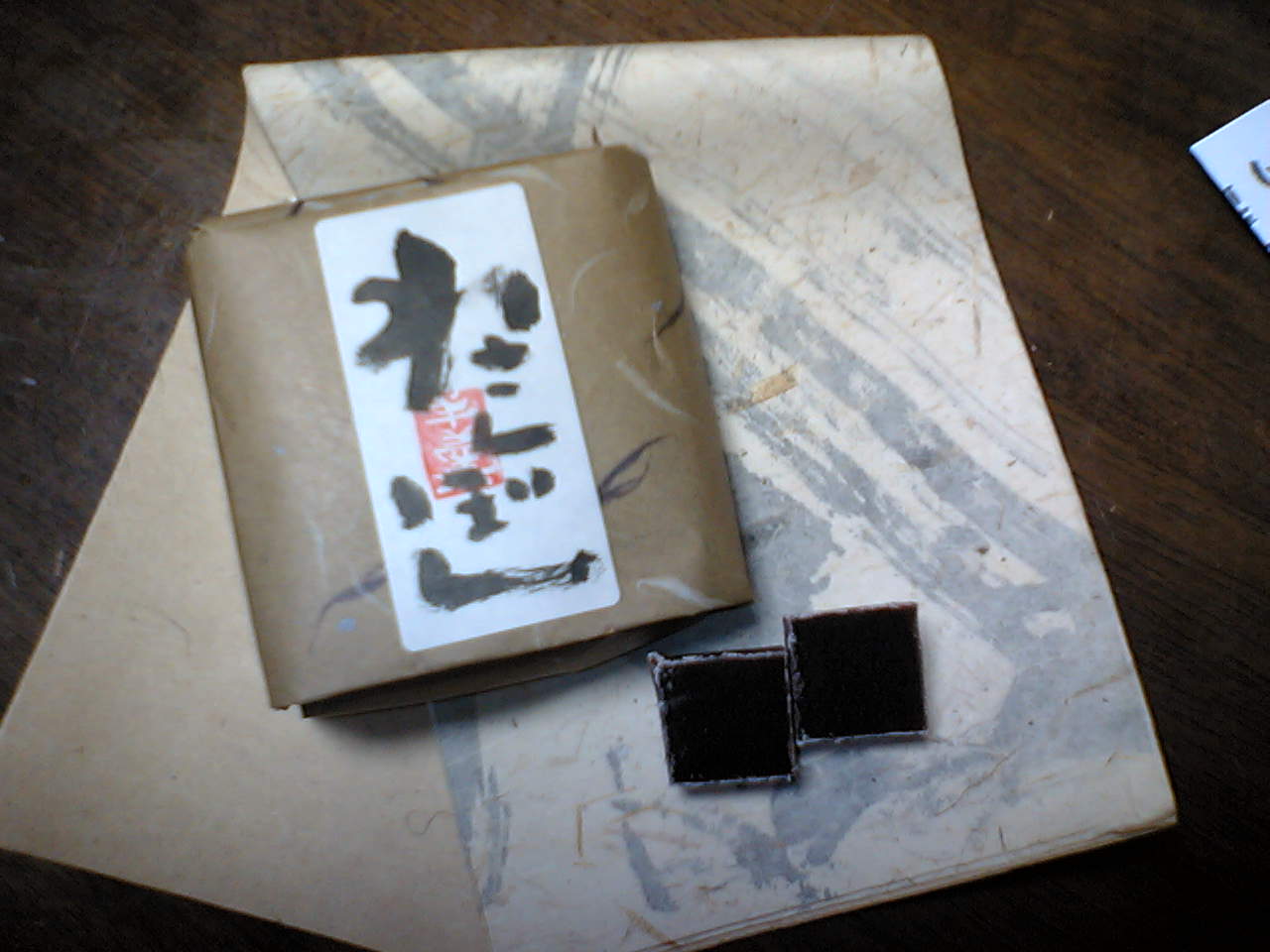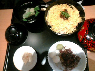 上のトッピングはクコの実。きんとんは山芋、白あん、それを砂糖で味付け。これも、MadameMieは食べるのを逃したのだが、食べた人の話によるととっておも上品に口の中で解けていく感じ…だそう。これだけちょっと値段が高いのもきちっと仕事をしているからかと思われる。
